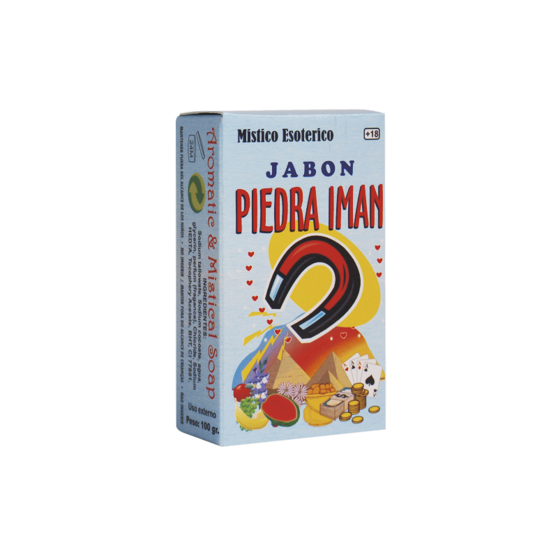 Jabón piedra imán, especialmente preparado para usar como jabón habitual cuando queremos atraer a la buena suerte hacia nosotros y nuestro entorno con el fuerte efecto del imàn.