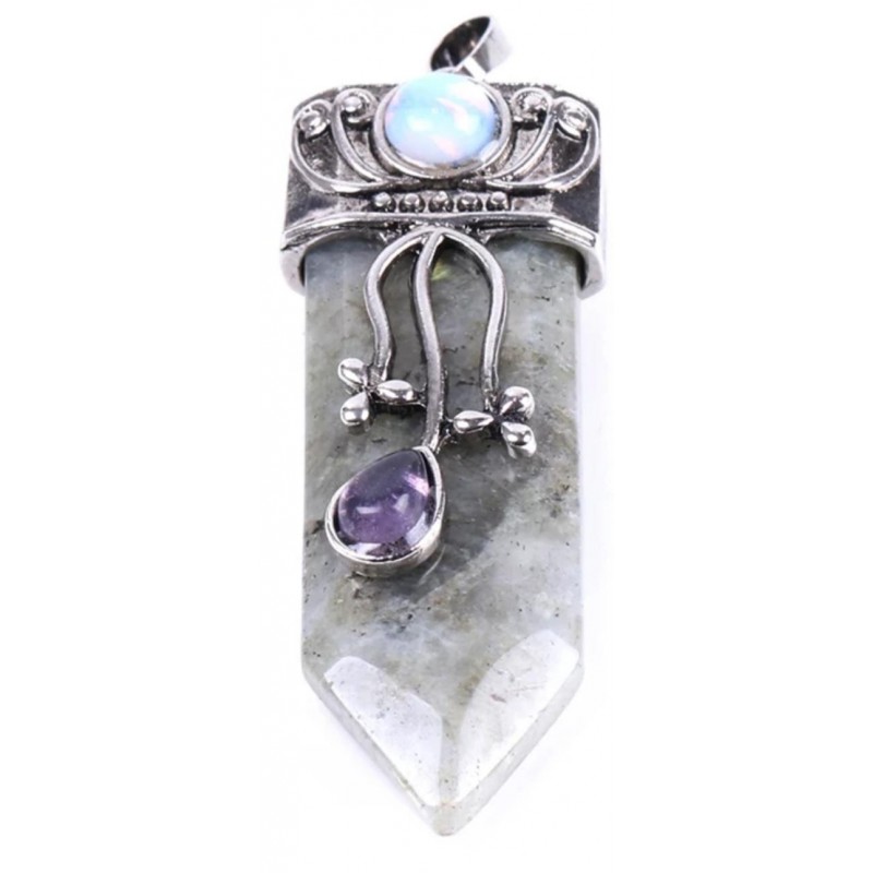 Puede llevarte a otro mundo o a otras vidas, ya que es una piedra muy esotérica que facilita la iniciación a los misterios. La labradorita alinea los cuerpos físico y etérico, estimula la intuición y los dones psíquicos. Psicológicamente disipa miedos e inseguridades. Fortalece la fe en el yo y la confianza en el universo.
