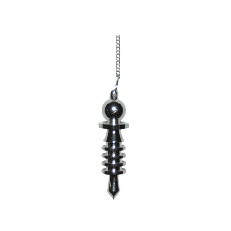 Es de gran sensibilidad radiestésica y emana continuamente el color blanco . Este tipo de péndulo es muy recomendado para la realización de trabajos terapéuticos como el sistema óseo, equilibrio de los chakras y restablecimiento de energía. Al igual que cualquier péndulo metálico no se impregna.Es el péndulo terapéutico que más se utiliza.