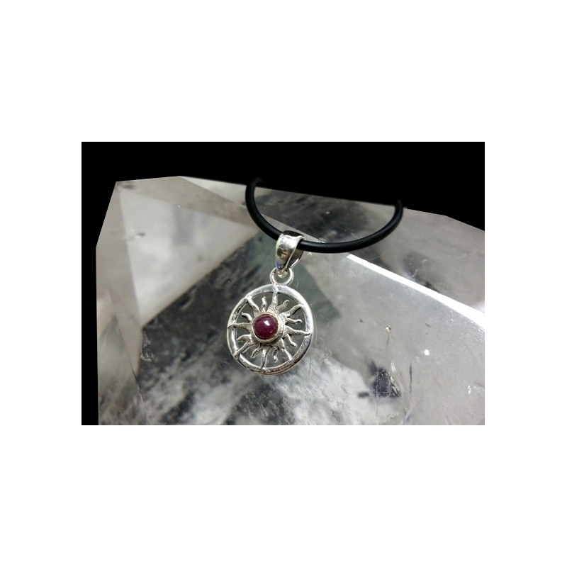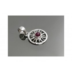 Colgante modelo SOL AZTECA con cabujón central de RUBI y montura en plata de ley 925.