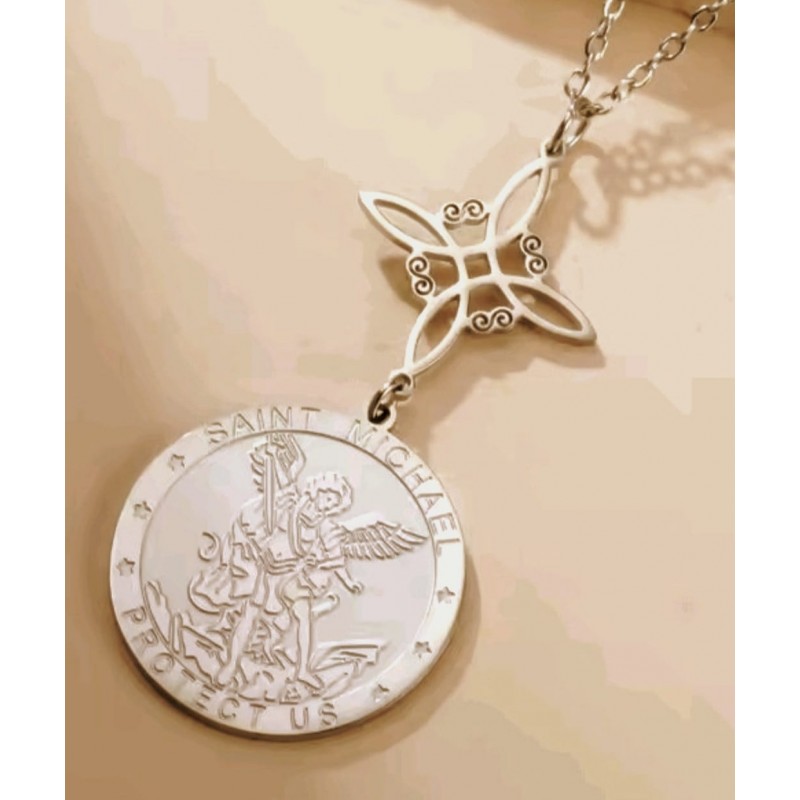 Este colgante de doble protección es una pieza de acero creada para protección espiritual, emocional y física.